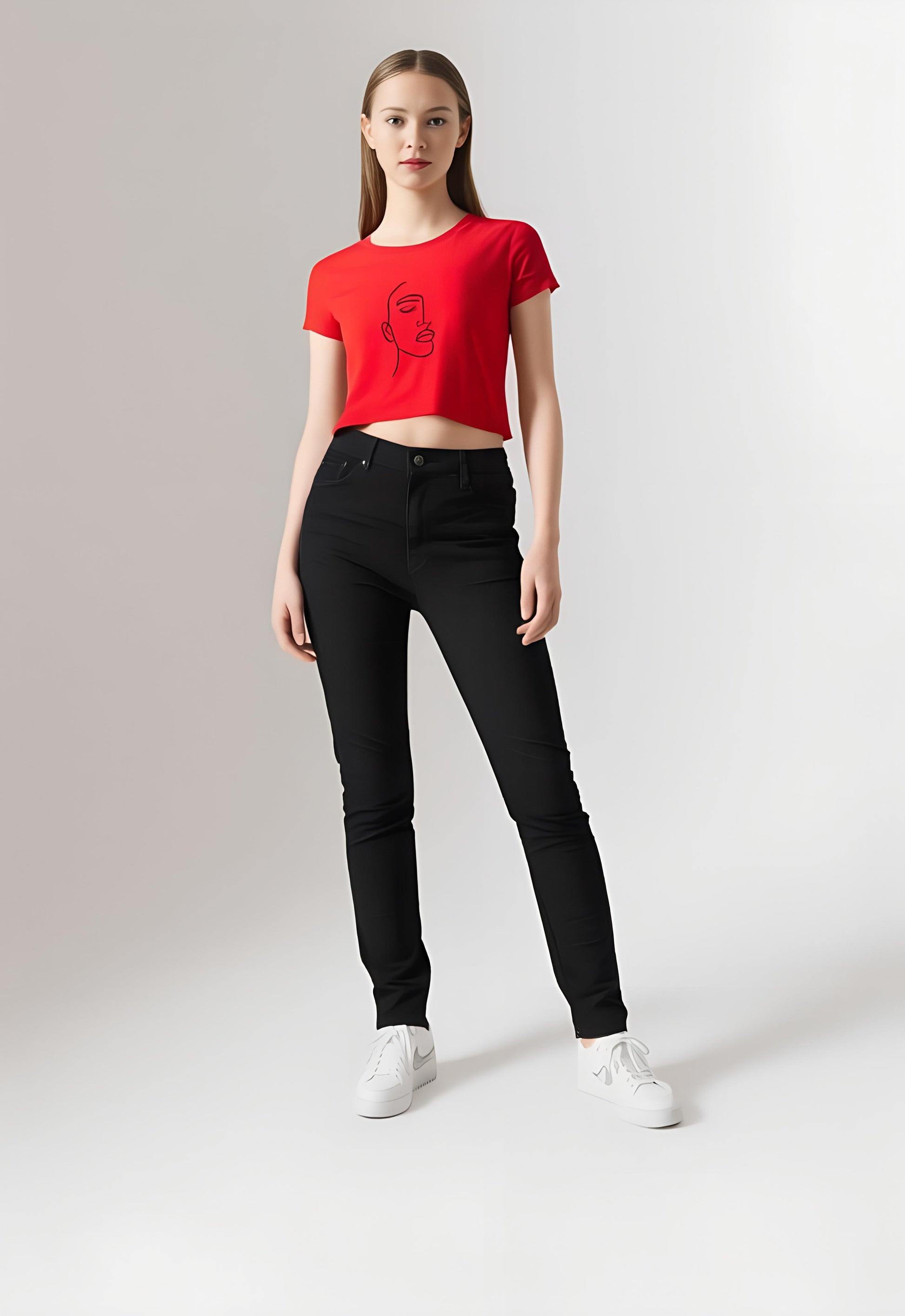 Fit: Cropped length with half sleeves – a flattering blend of comfort and edge.